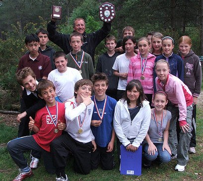 Dorset Schools League 1 After the final league event of the season, the League tables have been updated. Congratulations to the individual age group winners and to Swanage Middle School, this year's league winner, ahead of South Wilts GS and last year's champions, Burgate. The trophy and medals were presented at the Score Championships at Moors Valley. The annual Schools Score Championships were held on Friday May 16th at Moors Valley. Many thanks to Chris Turner (Planner) and John Warren (Organiser) and all the volunteer officials from Wimborne Orienteers who made the event such a success. With just over 100 children competing either singly or in pairs the attendance was slightly up on recent years and we welcome one or two new schools to the competitions. Only four competitors found all 24 controls and got back within the hour. Congratulations to our individual prizewinners and to Burgate School and Swanage Middle School, who won the team competitions. Download the Results. Photographs